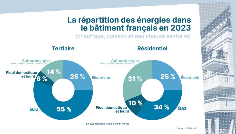 Avec 35 % de la consommation du bâtiment, les énergies fossiles sont au centre des attentions et la place du gaz naturel concentre une bonne partie des enjeux.