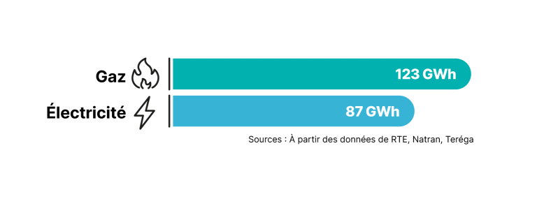 La puissance du réseau gazier est indispensable pour répondre aux besoins énergétiques, tout particulièrement lors des pics de froid. Par exemple, le 14 janvier 2025, entre 8h et 9h :
