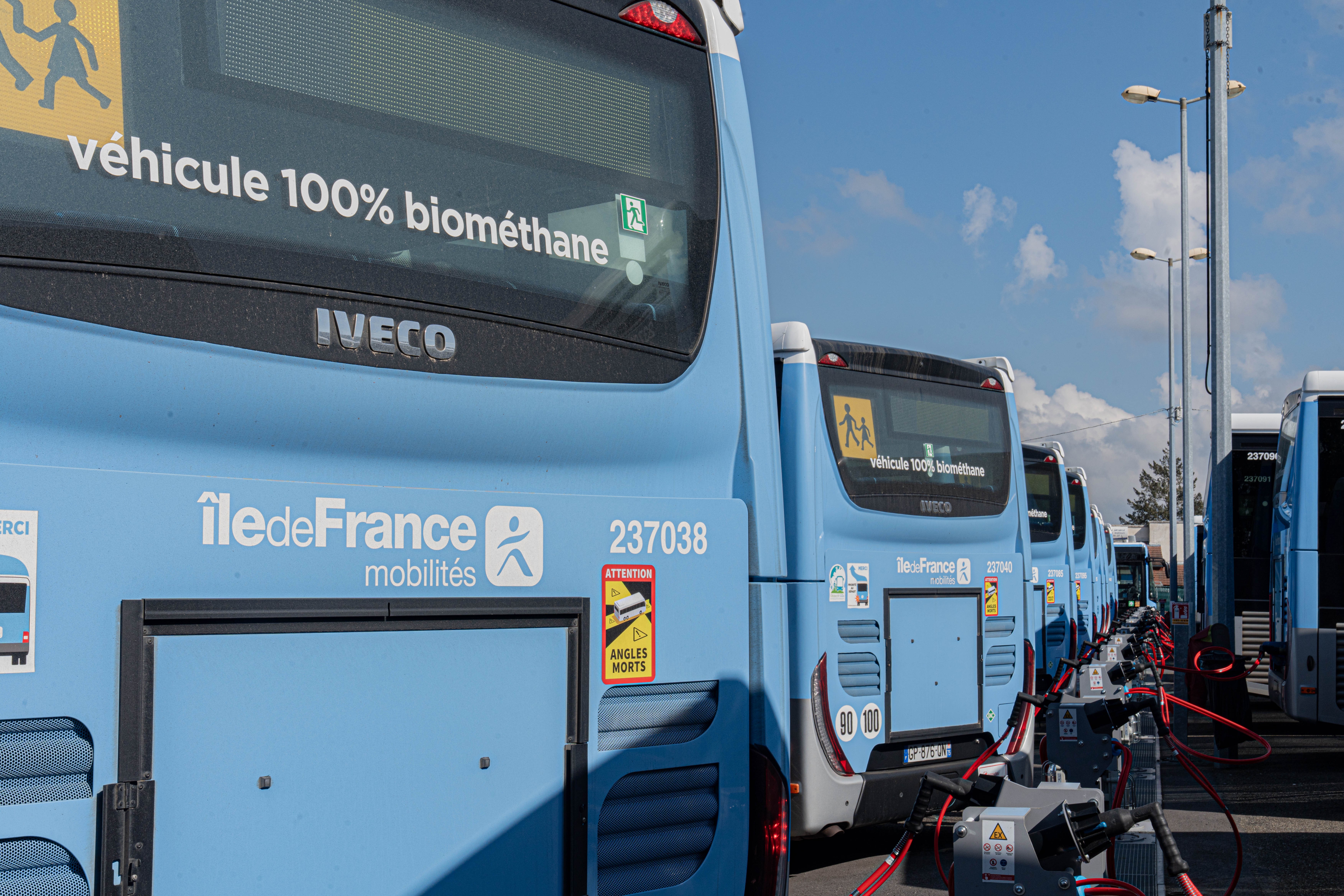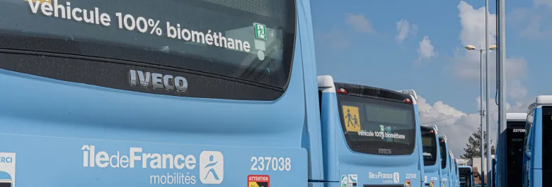La transition énergétique des bus et des cars dans l’ensemble de la Région répond aux enjeux cruciaux du changement climatique. Sur près de 11 000 véhicules, plus de la moitié aujourd'hui sont décarbonés ou à faibles émissions (BioGNV, électrique, hybride, hydrogène), dont plus d'un quart du total au BioGNV. D'ici 2029, Île-de-France Mobilités vise un parc 100 % décarboné avec une part de 70 % de BioGNV.