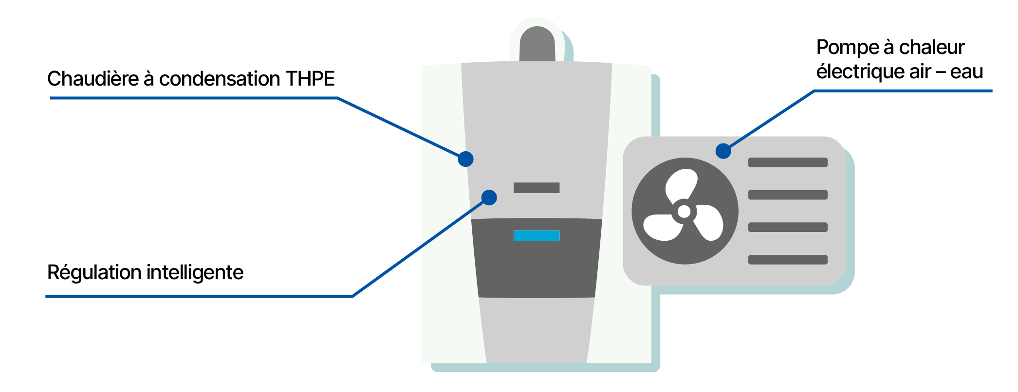 La PAC hybride assure l’équilibre du système énergétique en s’appuyant sur la complémentarité des énergies.