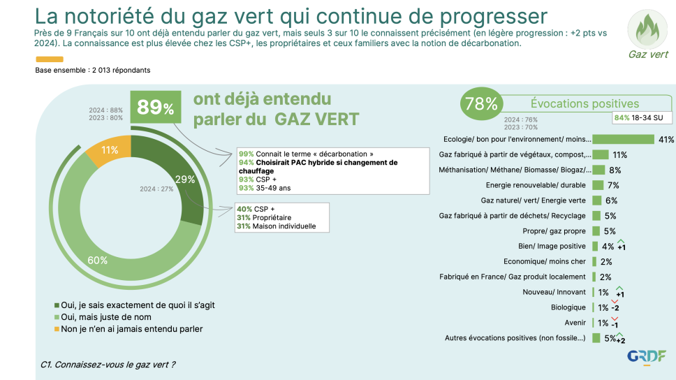 Sa notoriété et sa compatibilité avec les équipements existants progressent, confirmant que le gaz vert est désormais perçu comme une solution concrète, locale et immédiatement mobilisable.