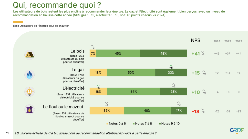 Près de deux tiers des Français ont aujourd’hui une image positive du gaz (+2 points vs 2024) et le niveau de recommandation progresse nettement (NPS : +15, +6 points).